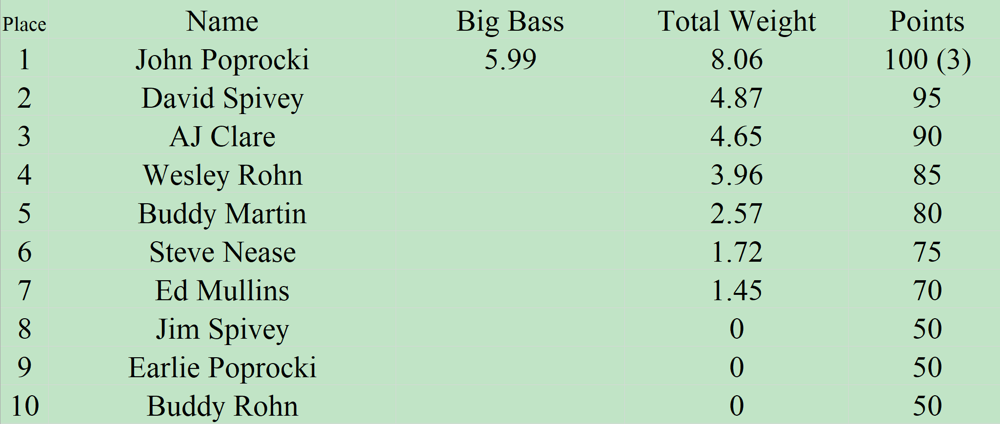 We fish the second Saturday of every month.